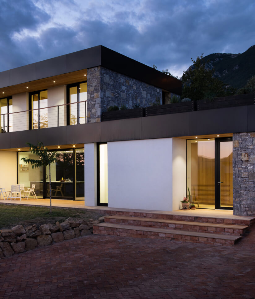 The development of windows and their increasing importance in an architecture of contemporary buildings is dictated by sustainable construction. A sustainable manufacture, installation and use of windows in residential buildings must meet numerous requirements: preventing heat loss, reducing overheating through glass in summer time, increasing solar gains in winter time, introducing sunlight, sound protection, ventilation… It is almost impossible to fully meet each of the preceding requirements. However, contemporary windows and available technology can help us to find an optimum solution for a given building. The fact is that the window development of the last twenty years made it possible for the proportion of glazed surfaces to increase significantly. The latter by far exceeds 20% of the net living area. In certain cases, this proportion accounts for almost 100%. This was also the period during which the off-the-plan products turned out to be insufficient which contributed to the manufacture of custom-made wooden windows. Ten years ago, when low-energy building was at its peak in Europe, it was considered that large glass surfaces should be installed on the southern side of residential buildings (owing to huge solar gains in winter time) while they should be avoided on the northern side (owing to major heat losses). However, nowadays we know that even locations, which do not allow a building to be oriented this way, make it possible for the glass surfaces to be installed on eastern or northern side without any major heat losses. Apart from energy efficiency, other factors that have a major impact on the quality of life are also gaining ground (e.g. introduction of enough sunlight into the room). Thus, a development of other construction materials and the way the buildings are constructed these days, materials with very good insulating properties applied on external walls, materials allowing sealing of very different construction assemblies and preventing or reducing thermal bridges and new heating systems (underfloor heating and heating with heating panels) providing constant temperatures of the interior regardless of the external conditions have allowed contemporary architecture to make use of vast transparent surfaces. Large transparent surfaces usually consist of fixed glazing units and opening floor-to-ceiling elements that extend across an entire storey, sometimes even over two or more storeys. These types of glazing are typical of common living areas (living room, dining room, kitchen), while bedrooms are more likely to be equipped with traditional windows or balcony doors allowing access to a terrace or balcony doors with a glass railings protecting from falls (i.e. French balconies). The use of various ventilation systems reduced the number of glazing units which are designed to be opened and the aim of which is to provide ventilation, as the correct use of ventilation system renders this more or less unnecessary. It is true, however, that a correct placement of windows (on the opposite sides of a building and across different storeys) which can be used for ventilation purposes, is a smart and sustainable manner that can be used mostly for cooling the buildings at nights in summer time.