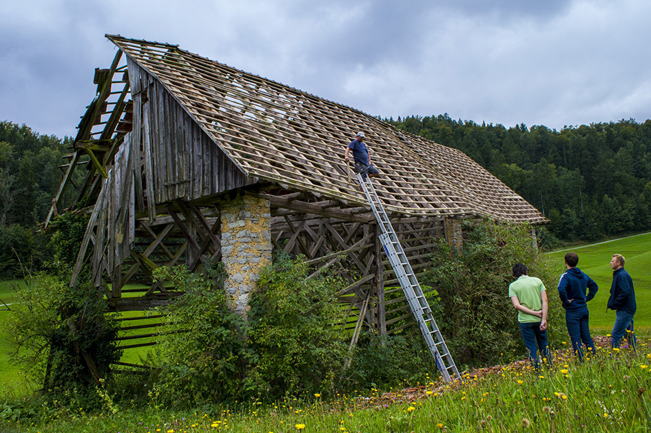 Hayrack was successfully demolished, which will be followed by transportation of all wood to the location of M SORA Joinery in Žiri. Wood will be examined and evaluated. Part of wood will be used for laboratory analysis which will take part at Department of Wood Science and Technology at Biotechnical faculty of University of Ljubljana.