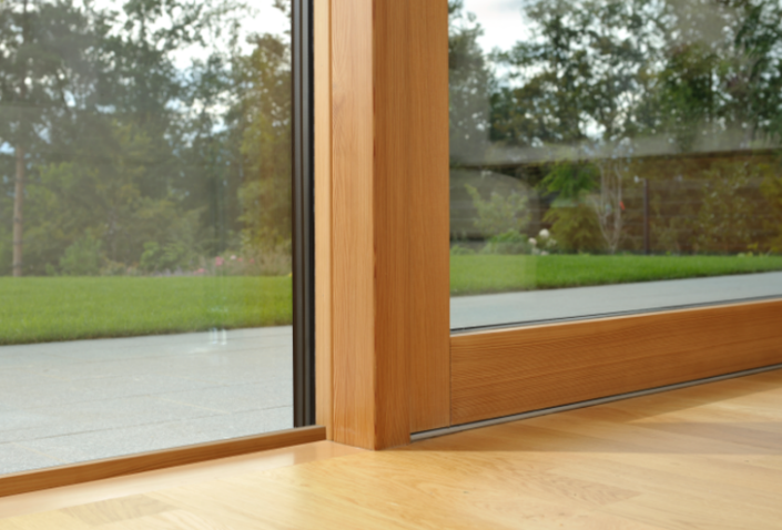 Slika 1: Standardno leseno okno Natura Optimo z zaščitenimi robovi stekla z lesom