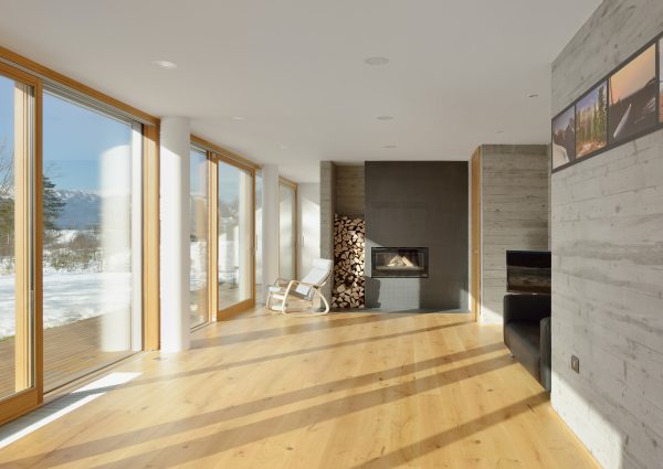 L House is located at the outskirts of the built-up area offering magnificent views on the Julian Alps and Bled on one side. The building has windows and panoramic doors opening up to the garden and mountain panorama in the back. However, the architects closed the house off to the busy street protecting it from the noise. The interior design wisely combines concrete, glass and wood creating a contemporary and open space that feels very cosy. (Photo: Miran Kambič)