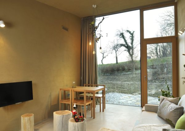 These architecturally and designer accomplished suites, located in the heart of thermal part of Slovenia, are made predominantly of eco materials. Furnishings and accessories are made of natural materials from the nearby surroundings and have been manufactured by renowned designers and artists. A carefully planned siting into astonishing natural surroundings allows this project to blend perfectly with the environment.
