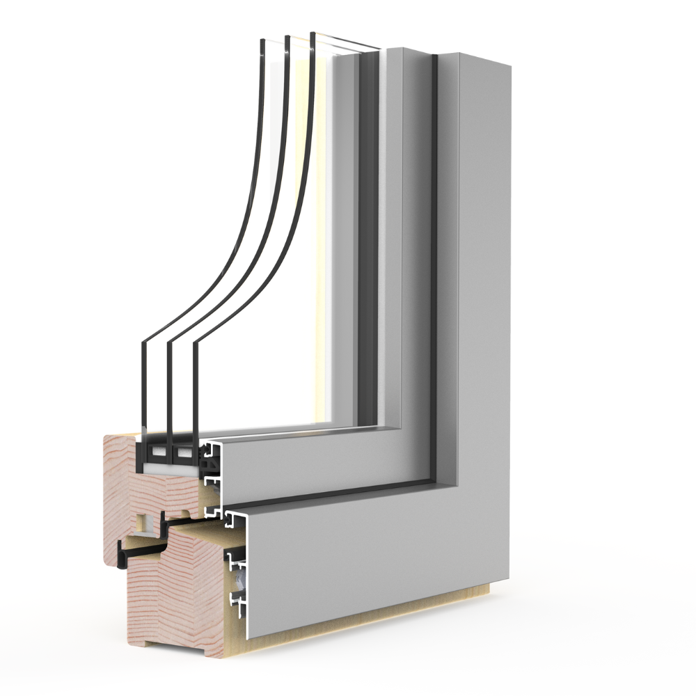 Universal wood–aluminum window with triple glazing and square-edged lines. It delivers higher energy efficiency, quieter living, and a modern appearance. The exterior aluminum cladding requires little maintenance, while the interior wood retains its natural warmth. A smart choice for a wide range of residential and commercial buildings.
